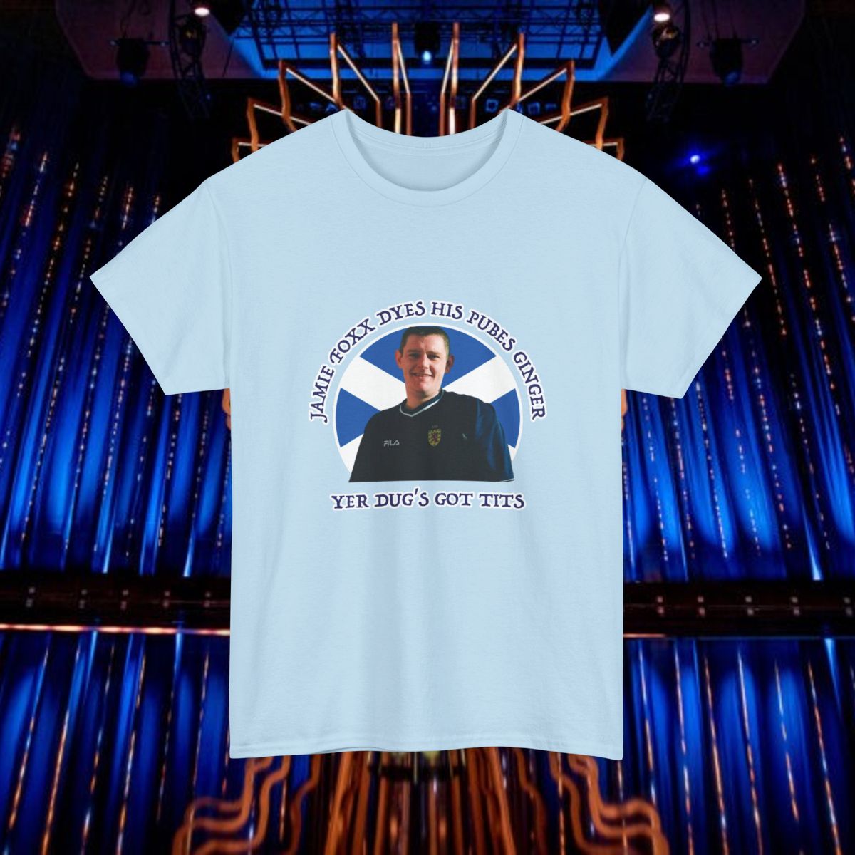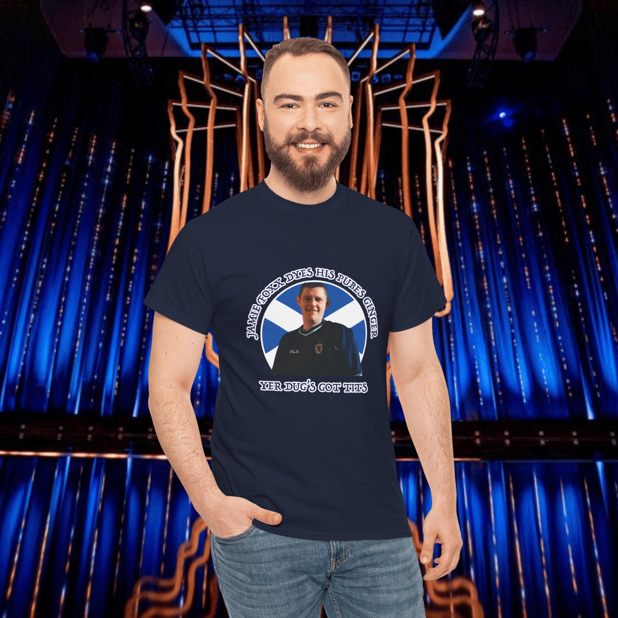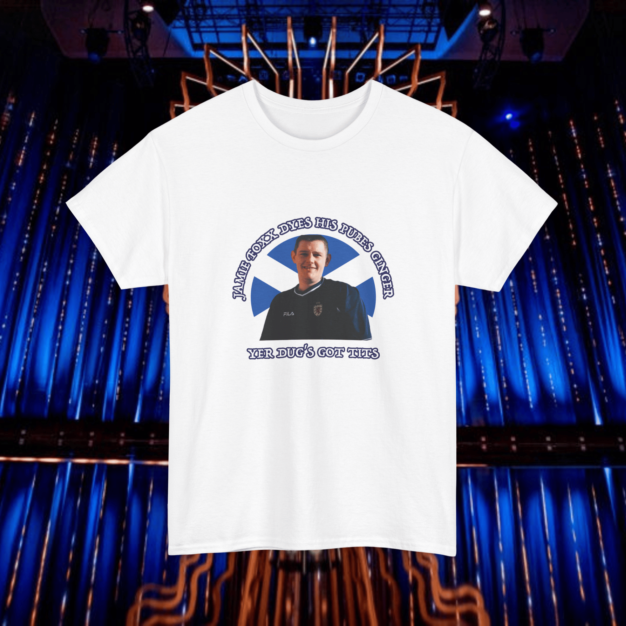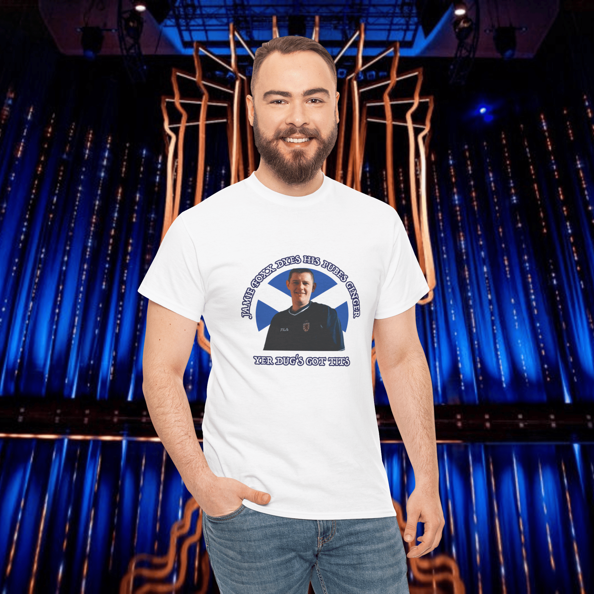 A soft cotton tee showing support for Tourette's campaigner John Davidson.